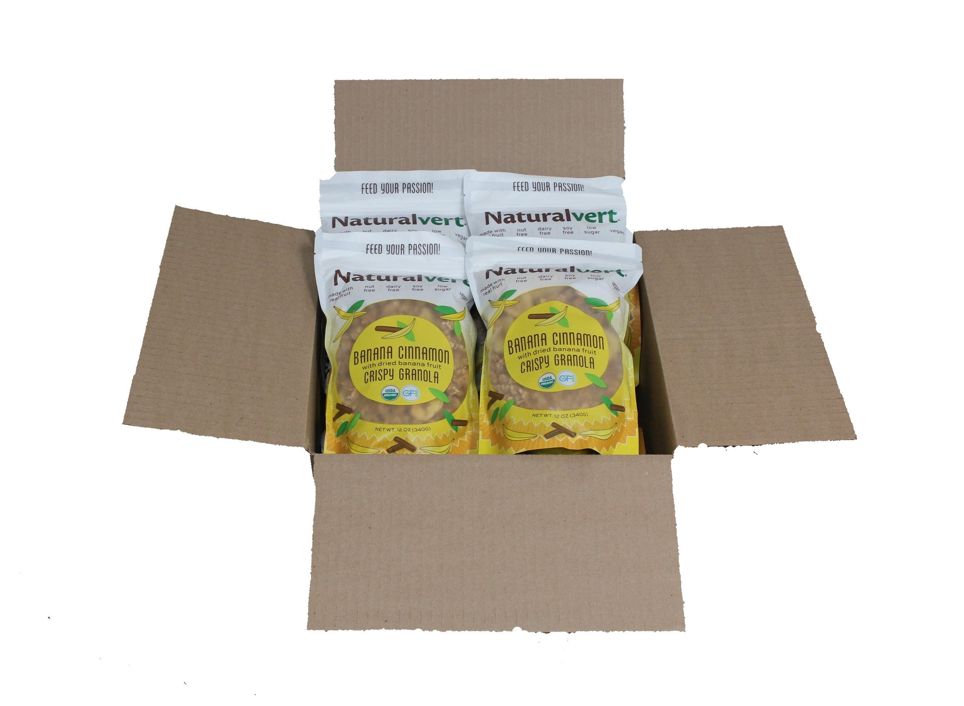Our Banana cinnamon flavor granola is mixed with real banana dried fruit sprinkled with cinnamon giving it a unique smell and that one of a kind Naturalvert taste. This flavor may cause over indulging due its amazing taste and smell!