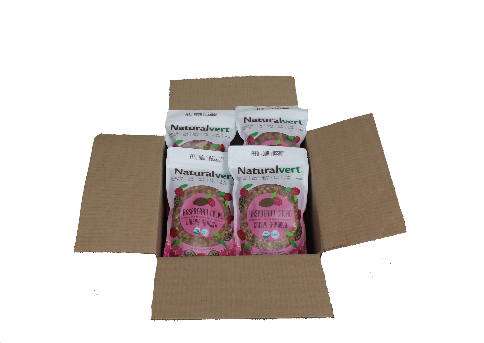 Our raspberry cacao flavor granola is made with organic ground cacao and may cause over indulging due to its amazing taste and smell.